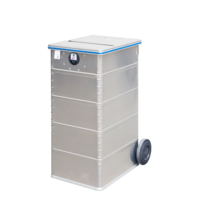 - Disponível em diferentes tamanhos, com rodas para fácil transporte.